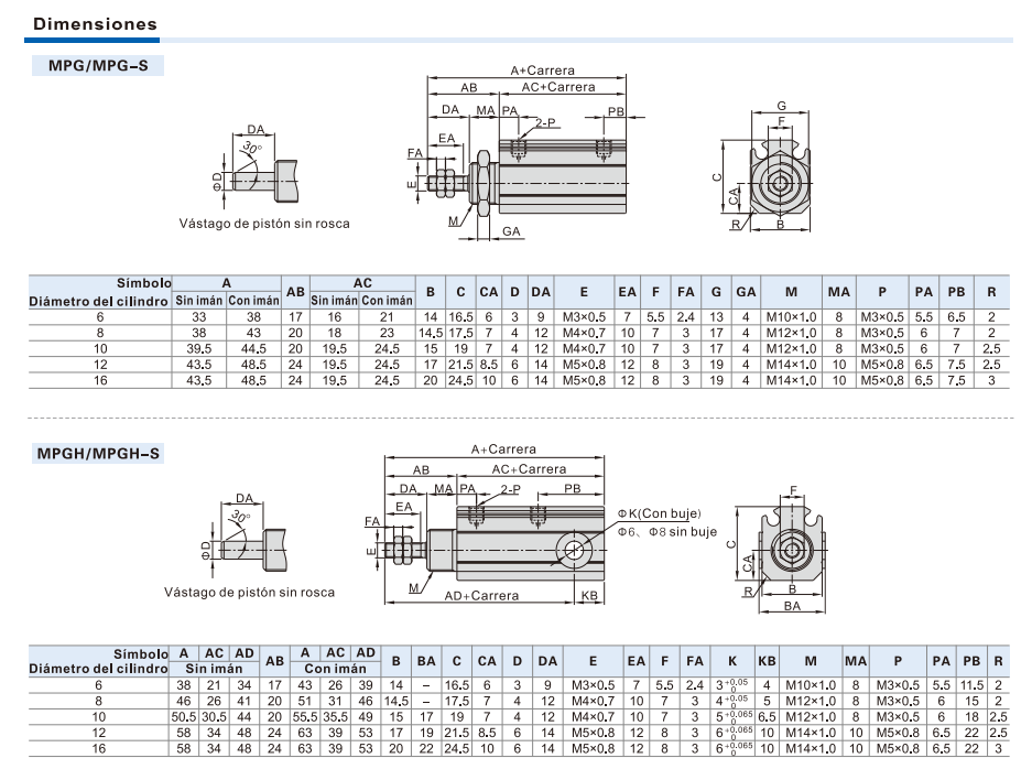Cilindro neumático ampliamente aplicado en equipos automáticos de industria química, industria textil, industria Electrónica y maquinaria, bajo ruido de funcionamiento, Cilindro neumático de MPGH16X30S